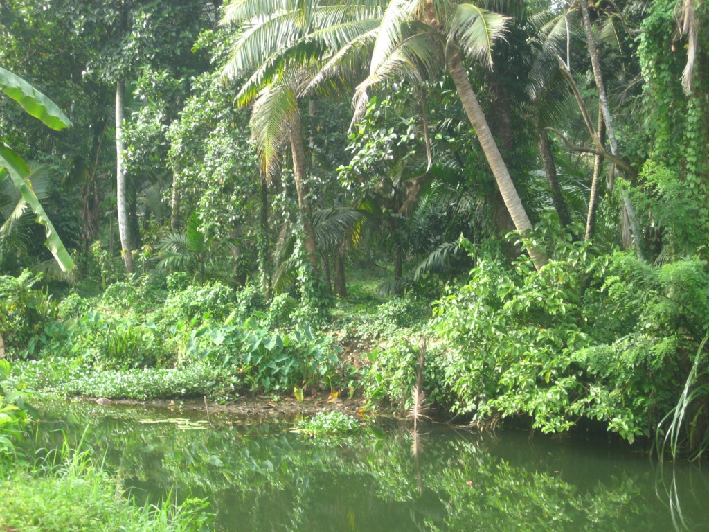 The place is fertile with paddy fields, coconut trees, mango trees, guava, jackfruit, papaya, and teak. You can see Kingfisher flying across on any given day, ducks quacking, hens roaming, the fishermen shouting “meene” in his vallam, women washing clothes in the river bank, children diving in to take a bath, cows grazing in the green land. On Sundays, people flock to the Church.
